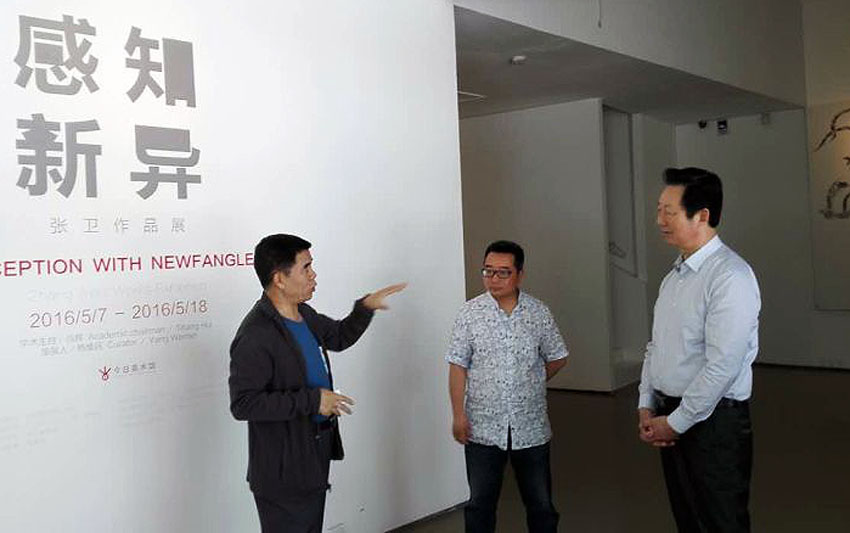 在京期间,成长春还应邀参观了我校94届优秀校友、著名水墨艺术家张卫的《感知新异》作品展。此次展览于5月7日在北京今日美术馆正式开幕,展出张卫近两年的新作62幅。