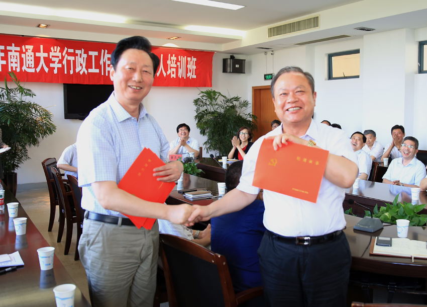 交流研讨后,成长春为参加培训的学员代表颁发了结业证书。本次培训班旨在贯彻落实中共中央印发的《干部教育培训工作条例》以及《2016年全省干部教育培训工作要点》等文件精神,围绕学校“十三五”规划明确的各项目标任务,着力抓好干部的党性教育和能力培训,为建设“四有”大学提供坚强的思想政治保证、人才保证和智力支持。培训班采取个人自学、专题报告、工作坊等形式,围绕《中国共产党章程》、《中国共产党廉洁自律准则》、《中国共产党纪律处分条例》、习近平总书记关于全面从严治党以及立德树人的相关论述、《南通大学“十三五”事业发展规划》、《南通大学深化综合改革实施意见》等相关文件以及《成长春书记在南通大学三届二次教代会暨二届二次工代会上的讲话》等内容展开培训。