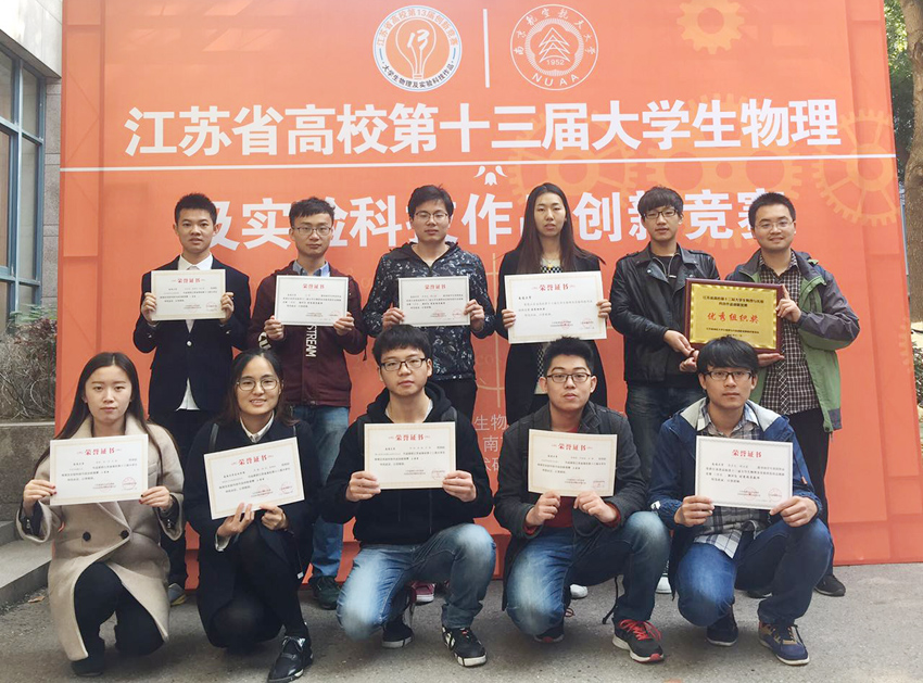 11月11-13日,江苏省第十三届高校大学生物理及实验科技作品创新竞赛的决赛在南京航空航天大学举行。经过激烈的角逐,我校获一等奖1项、二等奖1项、三等奖3项(详见附件),于玮、于彦呈、傅怀梁等教师被评为优秀指导教师,我校获优秀组织奖。