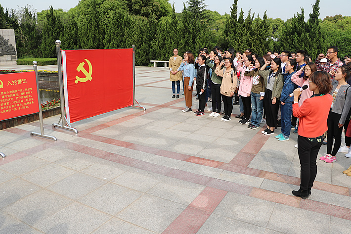 在沙家浜革命历史纪念馆,生命科学学院各支部正式党员、预备党员、生科院第十四期党训班成员了解了沙家浜人民在抗日战争中舍生忘死抗击外敌入侵的英雄事迹,重温革命时期我们党的光辉历程,体会新四军和沙家浜人民之间的军民鱼水情深。在革命英雄雕像前,在嘹亮的国际歌中,在学院党总支副书记胡春花的带领下,22名新发展党员,举右手握拳,面向鲜红的党旗,发出了郑重的誓言。