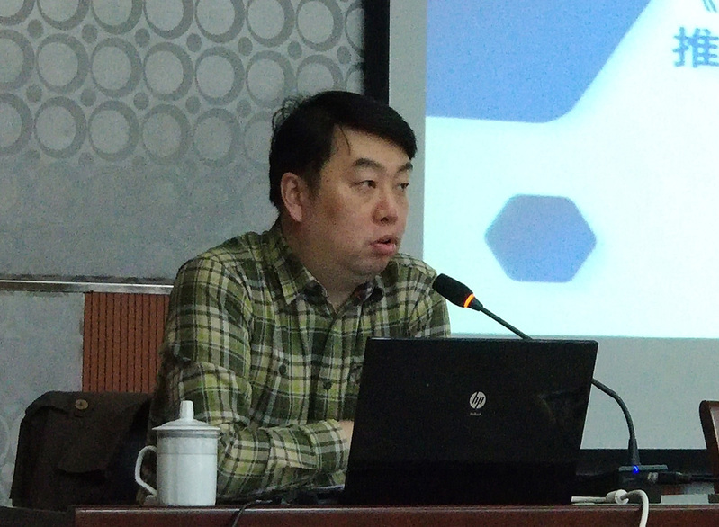 科技与产业处副处长沈卫星主持报告。科技与产业处、服务地方工作处、财务处等相关部门人员及相关学院(室、所、中心)领导和老师参加会议。