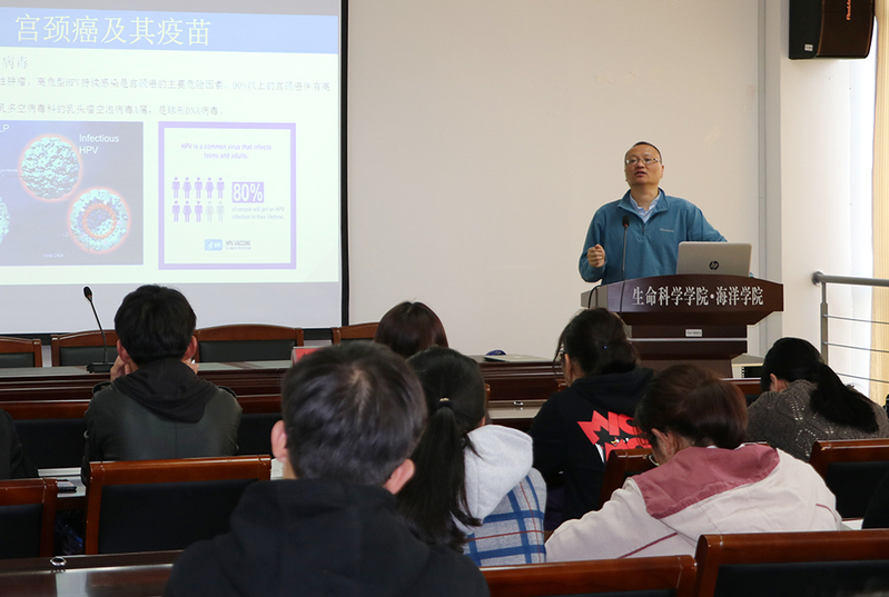 10月24日下午,新加坡国立大学袁于人副教授来校为生命科学学院、海洋学院学生做主题为“疫苗研究和开发”的学术讲座。
