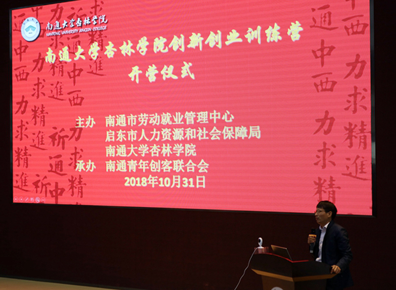 10月31日下午,杏林学院创新创业训练营开营仪式在启东校区举行。南通市劳动就业管理中心副主任丁小龙、启东市人社局副局长王红忠、学院院长顾海鹰、学院党委副书记、副院长刘时方等领导出席活动。