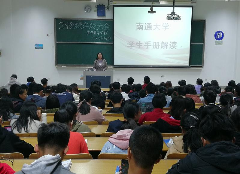 11月14日晚,生命科学学院开展“南通大学学生手册解读”专题讲座。新生辅导员相琳老师根据新修订的《南通大学学生手册》和学院相关文件规定内容,通过各式案例详细解读了学校学院规章制度,就学籍管理、综合测评评奖评优、学生宿舍管理规定等各项内容。讲座最后介绍了学院历年考研情况,与大家交流了大学生活学习的合理规划。