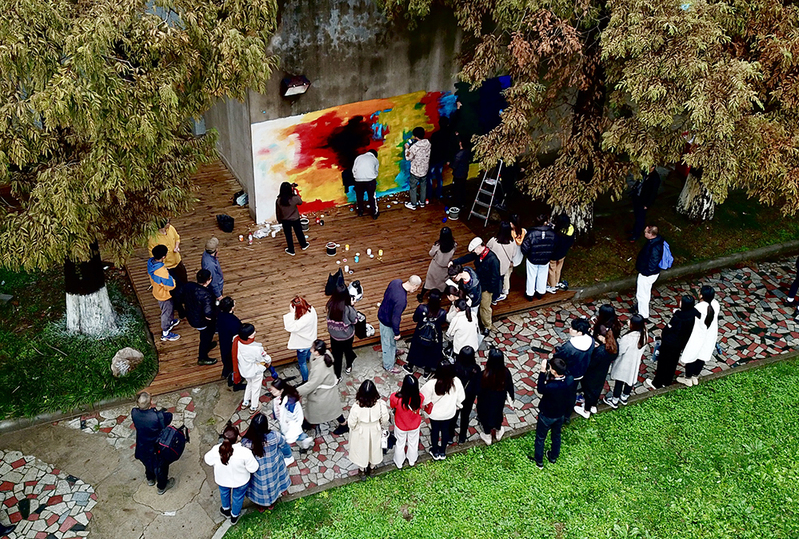 在艺术家们的指导下,艺术学院师生们对钟秀校区13号楼的东侧墙面进行了整体规划与设计,对色调定位、色彩搭配和幅面比例等基本要素进行了介绍与点拨,鼓励大家在有限的条件中发挥无限的想象,添加无数的创意,用独特的艺术审美抒发内心对艺术的感知,涂抹个体与艺术碰撞的花火。历时2个多小时,3m*5m的墙面焕然一新,绚丽丰富的时尚色彩、浑然一体的艺术风格中,悄然融入了中法艺术交流的活跃因子。至此,通大钟秀校区又增添了艺术新景,这面涂鸦墙也注定被赋予特定的文化意义,成为中法艺术友谊的一次积极见证。