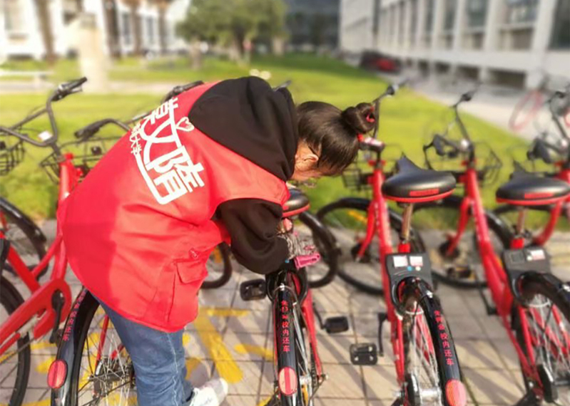 活动伊始,志愿者们穿上莫文隋红色马甲,进行了横幅签字、合影记录等活动。随后,各小组分点进行小红车的整理,男生负责将随处停放的自行车移至固定停车点,女生负责擦拭,保证小红车的干净整洁。活动中,志愿者们将乱停乱放的自行车扛起,越过小木桥、楼梯等地方,移至固定停车位。志愿者们共整理并擦拭了教学楼、食堂、超市等多个停车位点的共享单车。参加志愿服务的同学纷纷表示,志愿者服务活动能够提高同学们校园公物的爱护意识。