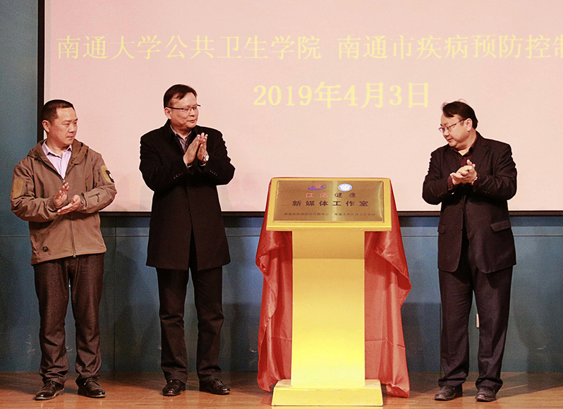 4月3日下午,由公共卫生学院与南通市疾病预防控制中心合作共建的“江海健康新媒体工作室”举行揭牌仪式。南通市疾控中心主任曹忠、我校公共卫生学院党委书记曹勇共同为工作室揭牌。