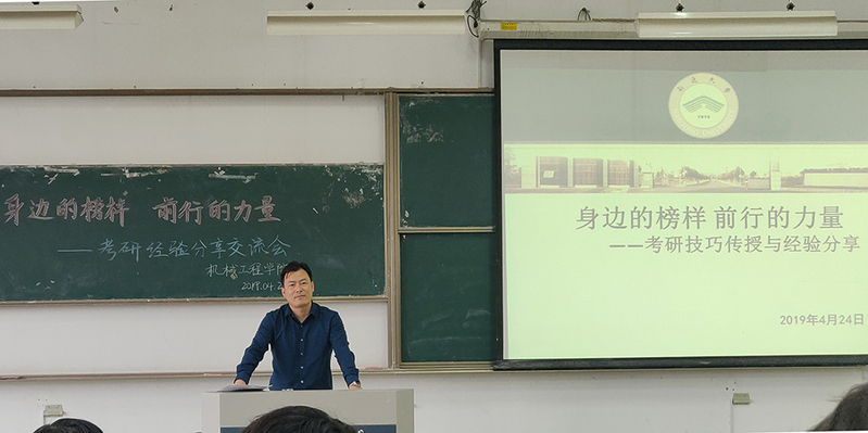 为进一步加强学风建设,交流考研学习经验,充分发挥以“考研带学风”的作用,营造浓厚的学习氛围,4月23日下午,机械工程学院举办“身边的榜样 前行的力量”考研经验分享交流会。2017级全体学生参加交流会。