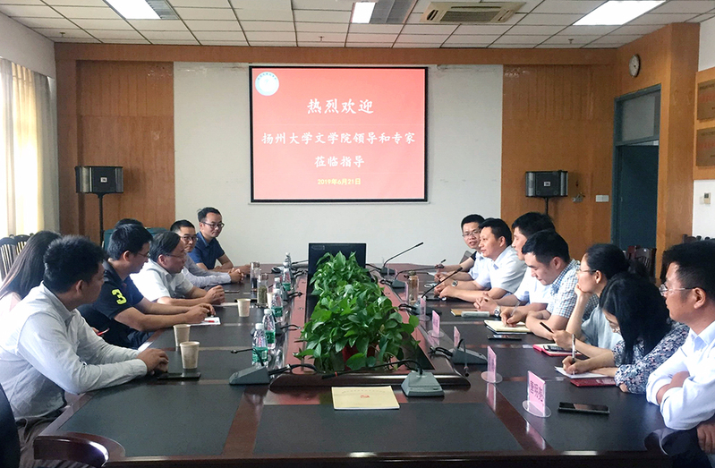 6月21日下午,扬州大学文学院党委书记顾松明一行来校交流。校党委常委、宣传部长吉明明会见了来宾。