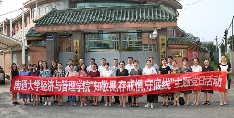 7月24日下午,经济与管理学院党委组织师生党员代表赴南通市看守所开展“知敬畏、存戒惧、守底线”廉政警示教育主题党日活动。学院党委书记陶锋、院长兼党委副书记姜朝晖,南通市看守所所长成建、副所长卞益民等参加活动。