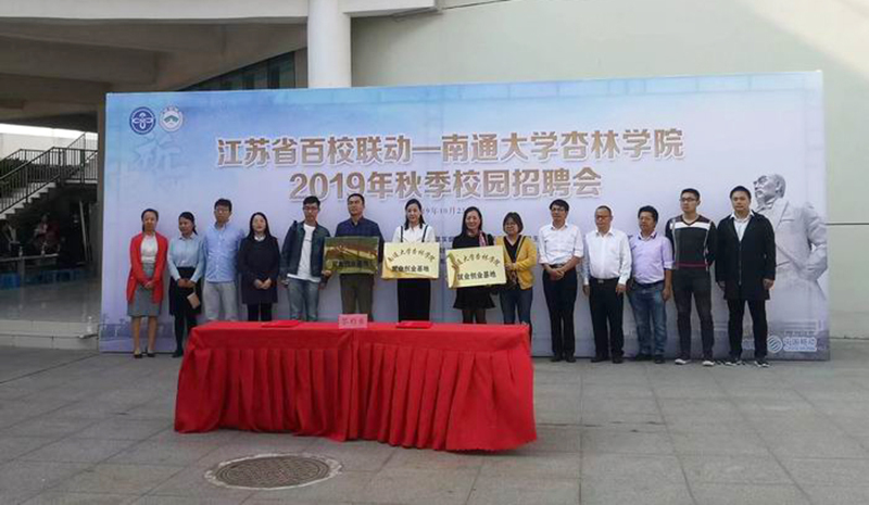 招聘会期间,杏林学院与参会企业进行了深入交流,并与启东吉莱电子有限公司、南通新日樱教育信息咨询有限公司、江苏东成机电工具有限公司举行了就业基地签约授牌仪式。