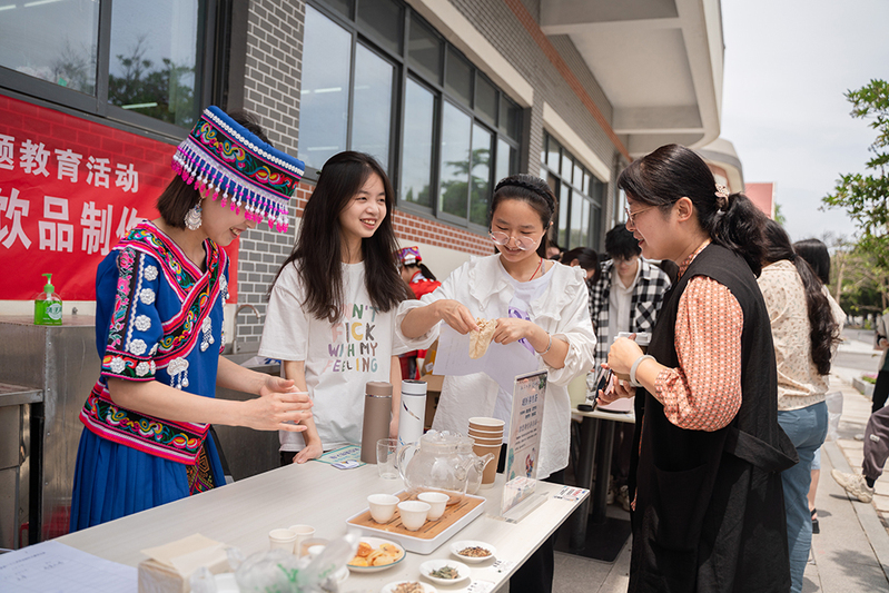 活动场地分为制作区和展示区。在制作区,每组参赛团队轮流进行中草药饮品的制作,制作过程吸引了许多师生进行观看、学习。在成品展示区,每组参赛团队制作了各自饮品专门的宣传牌,用于介绍该组所制作饮品使用的中草药、功效以及适用人群,帮助大家对各类中草药的功效与价值有了更深入的了解,营造校内浓厚学习了解中草药文化的氛围。