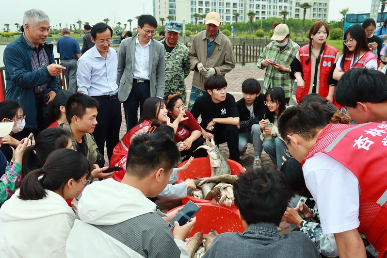 启东校区开展“喜迎校庆 渔你同行”捕鱼活动。