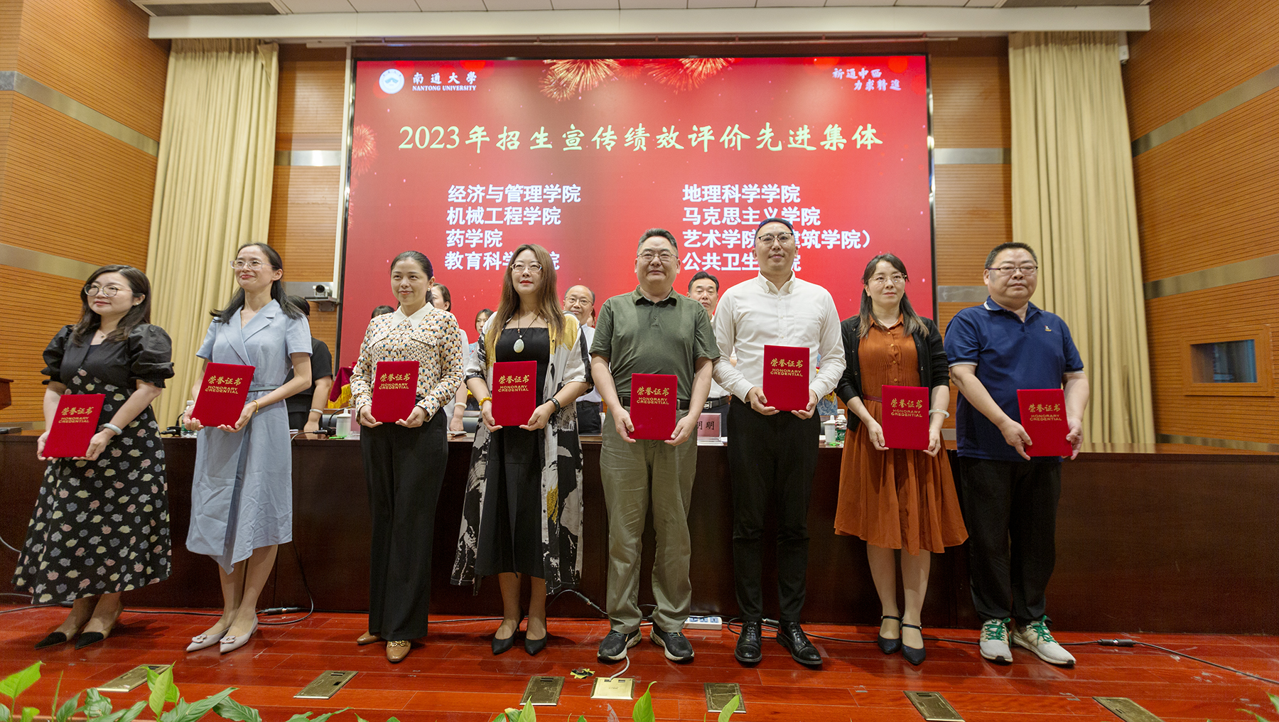 会上,吉明明宣读了《关于表彰2023年度南通大学本科招生宣传绩效评价先进集体和先进个人的决定》、《关于表彰2024年度“回母校看一看——我为通大代言”寒假社会实践先进集体和先进个人的决定》。与会领导为2023年招生宣传绩效评价先进集体、2023年招生宣传绩效评价先进个人、2024年寒假社会实践先进集体颁发荣誉证书。