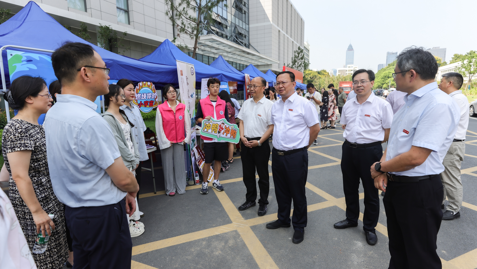 在启秀校区报到现场,施佺与研究生志愿者及辅导员亲切交流,鼓励迎新一线的师生和志愿者们认真做好服务工作,并勉励同学们尽快适应新的科研学习和生活环境。