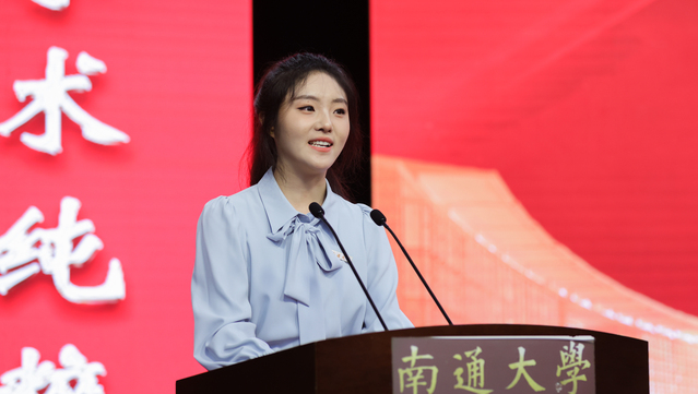 教育科学学院小教师范211班岳容冰作为学生代表发言,向老师们表示最衷心的感谢和最真挚的祝福。作为师范生,她将大力弘扬教育家精神,传承通大的师范特色,成为未来祖国教育事业的栋梁。