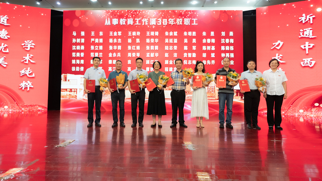 尚庆飞代表学校向受到表彰的各位教师表示热烈祝贺,向从事教育工作满30年的教职工致以崇高敬意,向全校广大教职工和离退休老教师、老同志致以诚挚慰问。他指出,校第四次党代会以来,全校上下坚定“通大自信”,集聚“通大智慧”,加快推动“名城名校”融合发展战略协议落地,着力破解事业发展中存在的结构性难题,学校事业高质量发展呈现出蒸蒸日上的良好态势。他说,这一切,都要归功于广大教师坚守立德树人初心,为学生的成长成才倾注热情、扛起责任;要归功于广大教师忠诚于党的教育事业,在平凡的岗位上履职尽责、无私奉献;要归功于广大教师牢记通大人的历史使命,在投身学校改革发展中勇立潮头,奋力拼搏。正是有了这样一支优秀的师资队伍,才培养出一批又一批德智体美劳全面发展的优秀人才,推动学校各项事业实现了一次又一次的新突破。