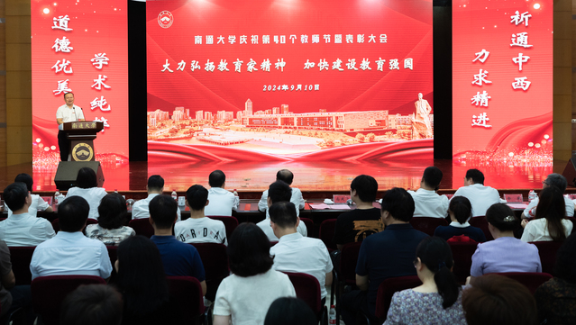 9月10日,我校举行庆祝第40个教师节表彰大会,表彰第五届江苏省高校青年教师教学竞赛获奖者和我校2024年教学名师、优秀教育工作者,并为从教30周年教职工颁发荣誉证书。校党委书记尚庆飞在大会上讲话。校党委副书记、校长杨宇民主持大会。在通校领导、党委常委出席大会。