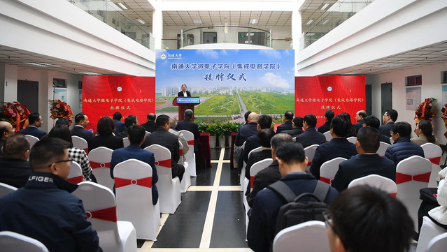 在南通市人民政府与南通大学携手签署“名城名校”融合发展战略协议后的第20天,2023年11月21日,微电子学院(集成电路学院)举行挂牌仪式,成为南通大学推进实施“名城名校”融合发展战略的首个重要举措。学院拥有教育部现代产业学院——通科微电子学院、半导体器件与集成电路设计封测省高校重点实验室,设有电子科学与技术、集成电路设计与集成系统2个本科专业,其中,电子科学与技术专业为江苏省卓越工程教育培养计划专业、江苏省一流专业、江苏省特色专业。