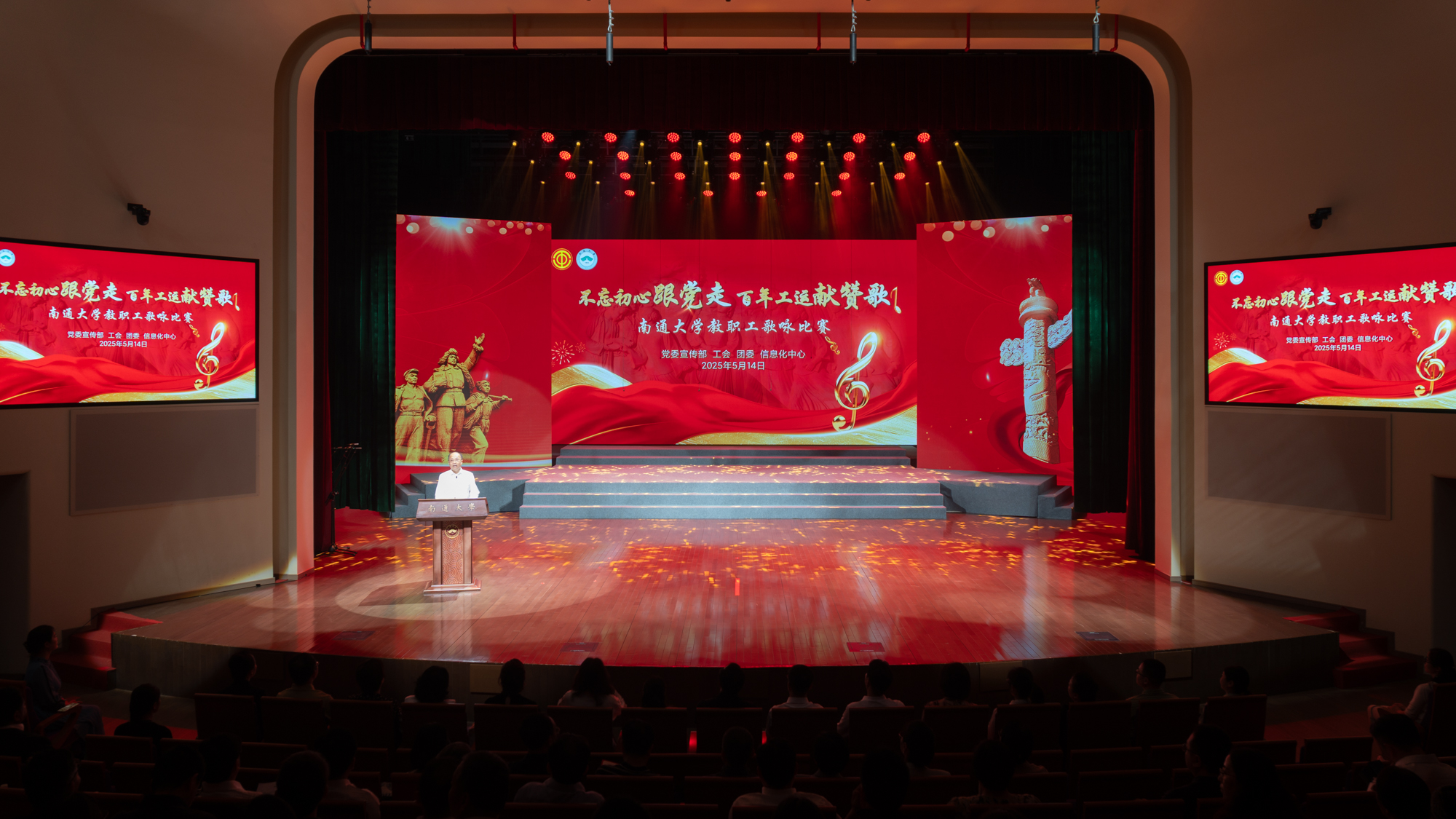 百年奋斗,薪火相传;百年荣光,再启新程。雄壮嘹亮的歌声响彻艺术中心剧场,27支代表队依次登场,分别唱响《走向复兴》《奉献》《江山》《打靶归来》《精忠报国》《祖国不会忘记》《我爱你,中国》《保卫黄河》《团结就是力量》等多首经典曲目。教职工们激情洋溢、放声高歌,用音符镌刻劳动荣光,用和声礼赞奋斗征程,流露出爱党爱国的深厚感情,展现了通大教职工昂扬向上的精神风貌。离退休教职工代表、艺术学院分工会还分别带来《再唱山歌给党听》《我和我的祖国》的精彩表演。经评委打分,机关、医学院、文学院代表队获一等奖;后勤保障部、生命科学学院、人工智能与计算机学院、外国语学院、信息化中心与继续教育学院、教育科学学院代表队获二等奖;杏林学院(启东校区管委会)、电气与自动化学院、体育科学学院(支云足球学院)、化学化工学院、交通与土木工程学院、机械工程学院、商学院(管理学院)、药学院、信息科学技术学院代表队获三等奖。南通市音乐家协会主席张辉、南通市教育工会主席周淑平等评委为获奖代表队颁奖。