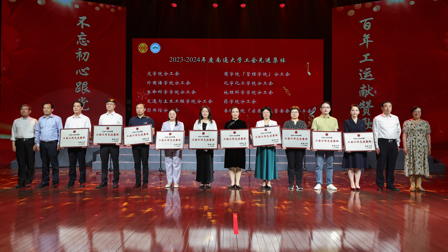 工会工作是学校事业发展的重要组成部分,我校工会始终坚持以习近平新时代中国特色社会主义思想为指导,把广大教职工紧紧团结在校党委周围,围绕中心工作,服务发展大局,充分发挥桥梁纽带作用,在教职工思想引领、权益保障、文化建设等领域深耕细作。活动中,与会领导还为荣获2023—2024年度南通大学工会工作先进集体的10个分工会、荣获“百年工运跟党走”工会知识竞赛活动优秀组织奖的10个分工会、直属工会小组颁奖。