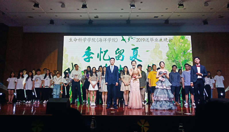 6月2日晚,生命科学学院·海洋学院举办“季忆留夏情生似海”2019届毕业生欢送晚会。晚会以动感十足、青春洋溢的爵士舞《KILLTHISLOVE》开场,大学生活动中心流光溢彩、热闹非凡。由毕业生演唱的《小幸运》和《你仍是少年》以动人的旋律和感人至深的歌词再忆大学四年的美好时光,表达了对大学生活的深深留恋;舞蹈《海拔六千米》讲述了在海拔六千米的高原壮士们为保护野生动物不惜牺牲生命,展现出一种大无畏的勇气和悲壮,深深震撼着观众的心灵;红色主题舞蹈《红珊瑚》用柔美的肢体语言展现出不一样的力量,歌颂共产党和人民军队的顽强斗志,展现了党与人民群众的血肉联系;小品《青春毕业季》和相声《爱在通大的日子》以宿舍幽默搞笑的日常生活情节为创作来源,体现了大学生活的美好以及同学之间的深厚情谊;在开启《写给自己的信》访谈节目中,三位即将毕业的学子分享了四年前入校时写给毕业时自己的信,深情款款地表达了对学校、学院和老师的感谢和不舍,毕业班班主任代表马以桐老师上台表达了对毕业学生的祝福,师生互动将晚会推向了高潮,晚会在诗朗诵《阳光下的四年》中落下帷幕。学院党委副书记、副院长金玲作为教师代表参加演出,给同学们带来了歌