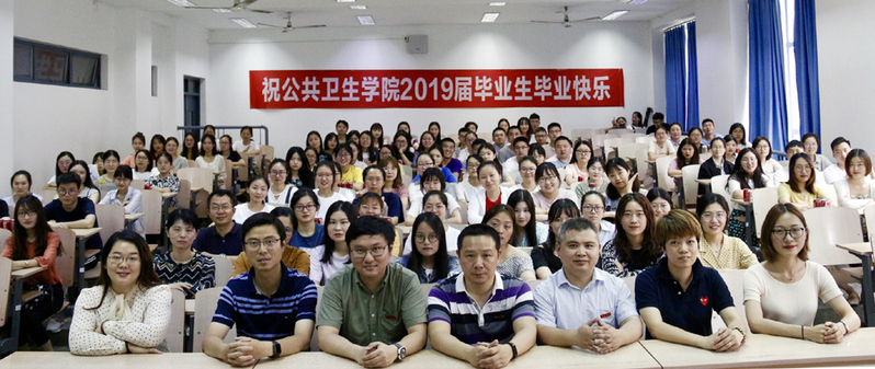 6月20日,公共卫生学院举办2019届毕业生欢送会,学院相关负责人参加欢送会。副院长李百胜用四个词“敬己,敬师,敬人,敬业”寄语2019届全体毕业生:感恩父母,他们永远是自己身后最坚强的后盾;感恩老师,指引学生人生前进的方向;感恩同窗,相识、相遇、相知,用点滴事情记录青春;在生活中遇到困难,要学会换位思考,秉持“仁者爱人”的精神,诚实,善良,传递正能量。他“低调做人,高调做事”鼓励毕业生们脚踏实地、认真做事。2016级研究生阮栾绮、医检152班杨子君、预防143班魏来三位同学作为毕业生代表讲述了他们的公卫回忆,感激恩师教诲,感谢同窗陪伴,同时也表达了对公卫最美好的祝福。流行病学教研室主任褚敏捷、环境卫生学教研室主任王晓珂、辅导员郁晓燕作为教师代表为毕业生送去祝福,他们回忆了同学们刚入学时的情景,表达了对他们的不舍之情,鼓励同学们怀抱梦想,朝着最高领域不断努力,成为该领域的建设者、引领者和示范者。学院还为每一位毕业生定制了专属小礼物——印上名字与毕业祝福的可乐,毕业生们在明信片上写下寄语和期望,投进邮箱寄给即将入学的2019级学弟学妹们,祝福他们珍惜时光、不负韶华,开启在通大的精彩人生。
