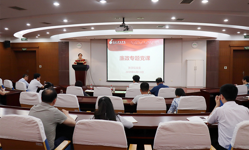6月11日下午,校纪委副书记、纪委办公室主任季红兵受邀走进医学院“星光微讲堂”,为学院师生党员作题为《认真学习新条例,做守纪律讲规矩的党员》廉政专题党课。季红兵从“党的历史发展”“新时代加强党的建设要求”两个方面阐述了“守纪律讲规矩”的重要意义,并围绕新修订的《中国共产党纪律处分条例》,运用大量真实案例,详细解读了“六大纪律”新规。季红兵强调,广大党员必须要把纪律和规矩挺在前面,自觉做政治上的明白人,争做清廉的新时代合格党员。党员干部更是要严于律己,真正做到懂法纪、明规矩,知敬畏、存戒惧,切实履行好“一岗双责”,以上率下做表率,带头营造积极向上、干事创业、风清气正的良好政治生态,以实际行动贯彻落实好全面从严治党的新思想、新要求。学院党委副书记、副院长宋建主持报告会,指出,新时代要有新气象新作为,严明的纪律是重要保证,全院师生党员要始终将严守规矩作为内心深处的一种坚定信念,内化成一种生活习惯和规范,自觉增强“四个意识”,坚定“四个自信”,做到“两个维护”,坚守初心,履行使命,同心协力推动研究型学院建设步伐,为实现学校“8050计划”目标,建成特色鲜明的高水平大学作出积极贡献。此次活动是依