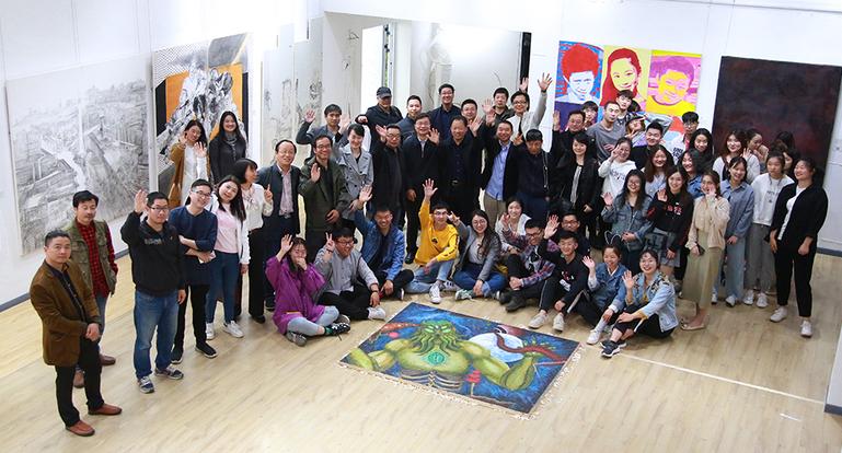 5月8日,炫青春——2019南通大学艺术学院美术系毕业作品展拉开帷幕,集中展现艺术学院15级美术学、美术学(师范)专业全体学生近百幅毕业创作作品。本次展览以国画、油画为主,作品主题鲜明、题材多样、内容丰富、富有时代气息,囊括了写实、表现、写意、抽象等各种表现手法。在一幅幅画作中,有着对艺术新形式的尝试,也有着对创作观念的个人理解,还有着对生命激情的感知,饱含了毕业生们蓬勃的艺术热情、旺盛的艺术创造力和丰富的艺术想象力。他们将生命中最真挚的情怀、最绚烂的火花、以及对青春时代的热烈独白通过画作表达了出来。他们用独特的绘画语言创造出了源于生活的心灵体验,阐释了对生活的感悟。艺术学院院长张卫对本届毕业作品给予充分的肯定。他认为大部分作品在形式等方面做了很大的突破和挑战,指出毕业创作只是创作的一个起点,希望学子们能从一个更高远的视野去观察、思考,创作出更多优秀的作品。学院的毕业季已经拉开帷幕,毕业生们可以尽情地享受这场毕业盛宴,为自己的大学生活画上圆满的句号。(於玲玲/文陆阳/摄)艺术学院美术系毕业作品展开幕。