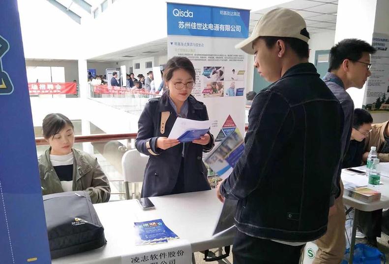 4月12日,计算机科学与技术学院举办2018春季IT类专场招聘会。来自上海、南京、苏州、无锡、南通的30家优质企业前来参会,提供近600个就业岗位。招聘会现场气氛热烈,计算机科学与技术学院18届本科生、研究生积极参加此次招聘会,与用人单位进行洽谈。此外,低年级同学到招聘会现场观摩学习,尽早了解市场行情,以及企业对人才的素质要求,进一步剖析差距、明确目标、合理规划。作为一年一度大规模的IT类专场招聘会,计算机科学与技术学院以满足就业供需双方需求为目标,以优质的资源共享库为支撑,实现应届毕业生就业最优化和大学生就业创业服务工作最大化。近年来,计算机科学与技术学院不断加大就业创业服务工作力度,成功举办多场IT类专场招聘会。学院今后将继续加强与用人单位之间的沟通与合作,根据当前IT行业人力资源市场情况,有计划、有组织开展系列专场招聘会,为毕业生提供更多、更优质的就业机会。(顾飘)计算机科学与技术学院举办2018春季IT类专场招聘会。