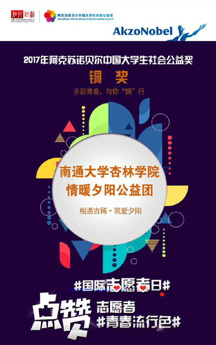 情暖夕阳公益团获阿克苏诺贝尔中国大学生社会公益奖铜奖