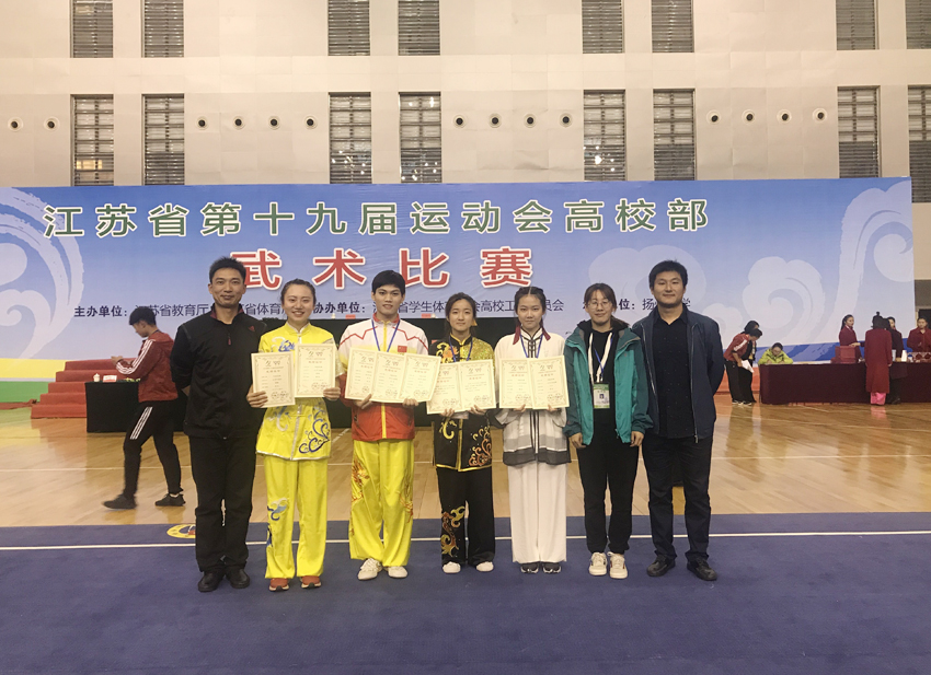 11月4-7日,江苏省第十九届运动会高校部甲组武术比赛在扬州大学举行,我校武术队在比赛中喜获佳绩。文