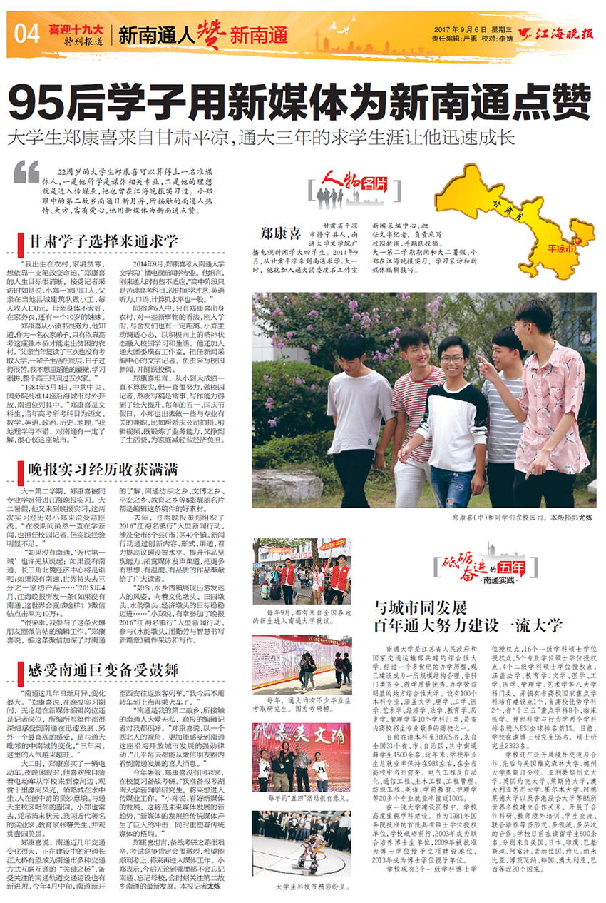 五位通大人亮相《江海晚报》喜迎十九大系列报道