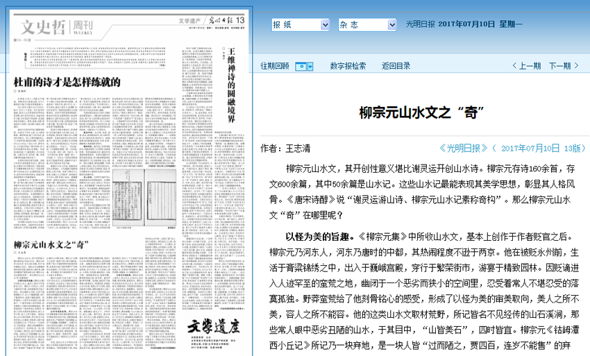 7月10日和7月11日出版的《光明日报》,连续两天刊登我校文学院王志清教授评论文章,介绍其对唐代诗