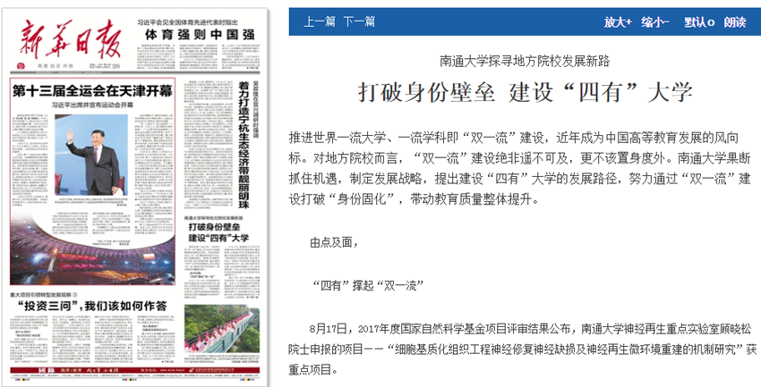 8月28日出版的《新华日报》,在一版显著位置刊登通讯《打破身份壁垒建设“四有”大学》,报道了我校积极