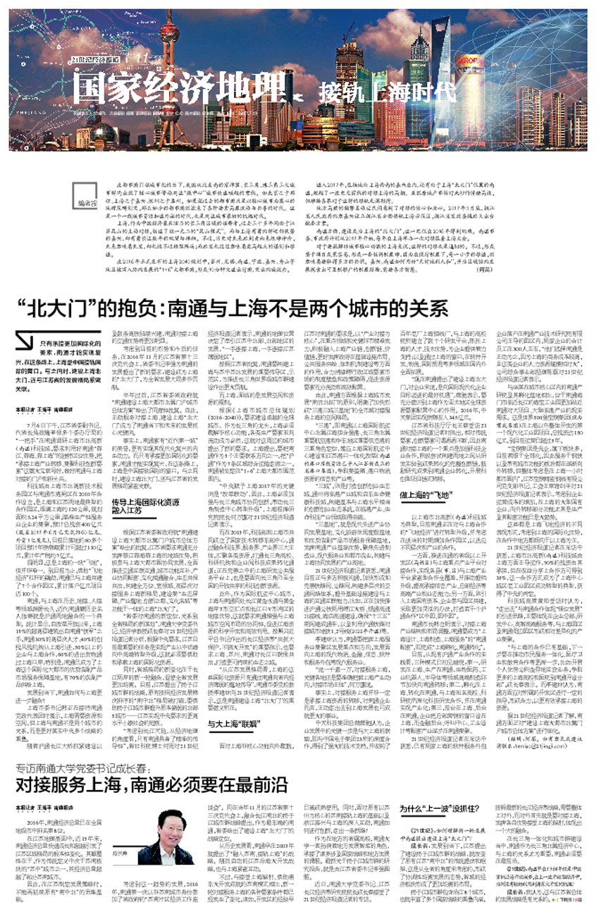 今天出版的《21世纪经济报道》刊登对我校党委书记成长春的专访《对接服务上海,南通必须要在最前沿》。