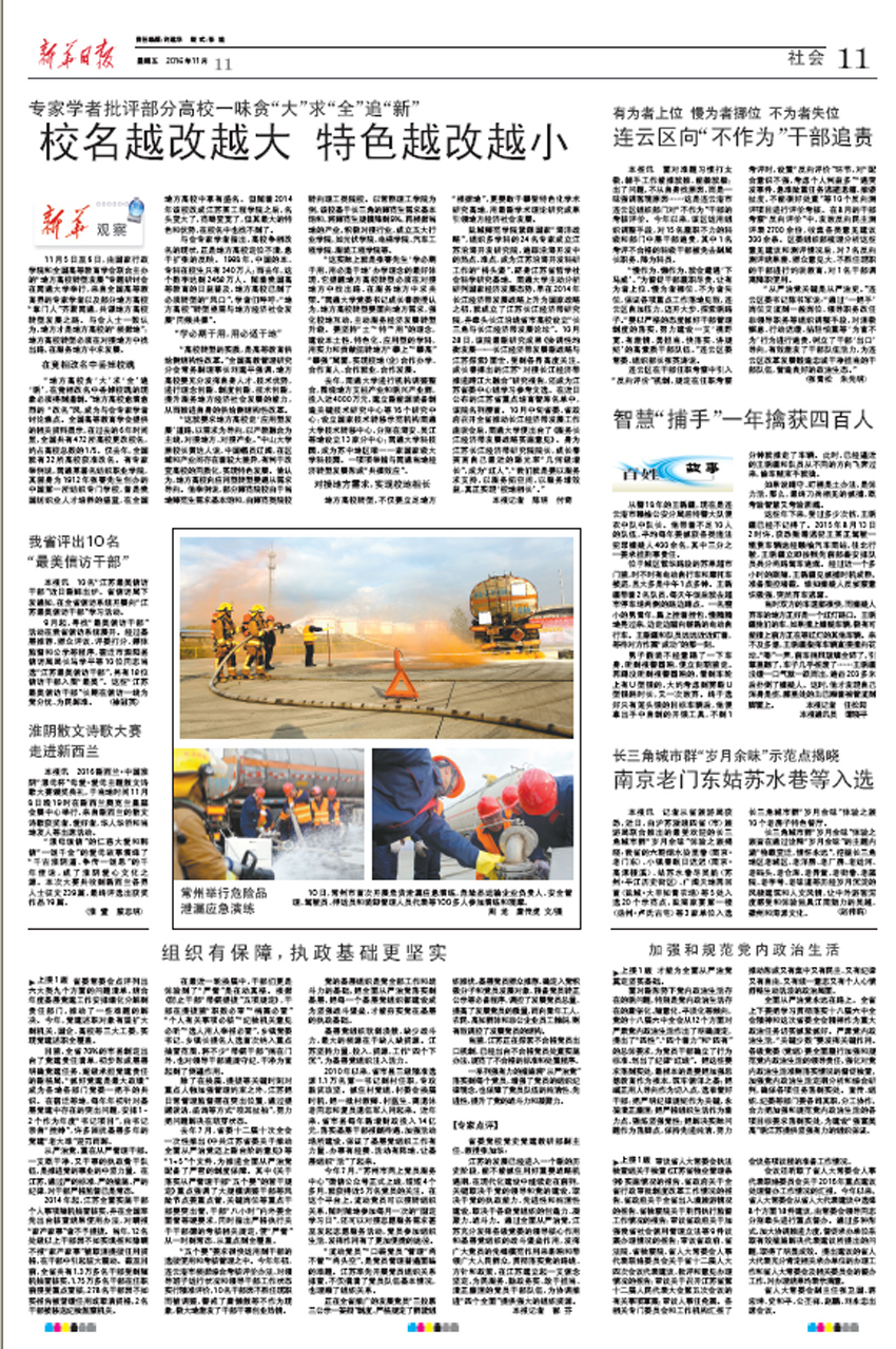 11月11日出版的新华日报,在社会版头条《新华观察》栏目刊登了题为《校名越改越大 特色越改越小》的文
