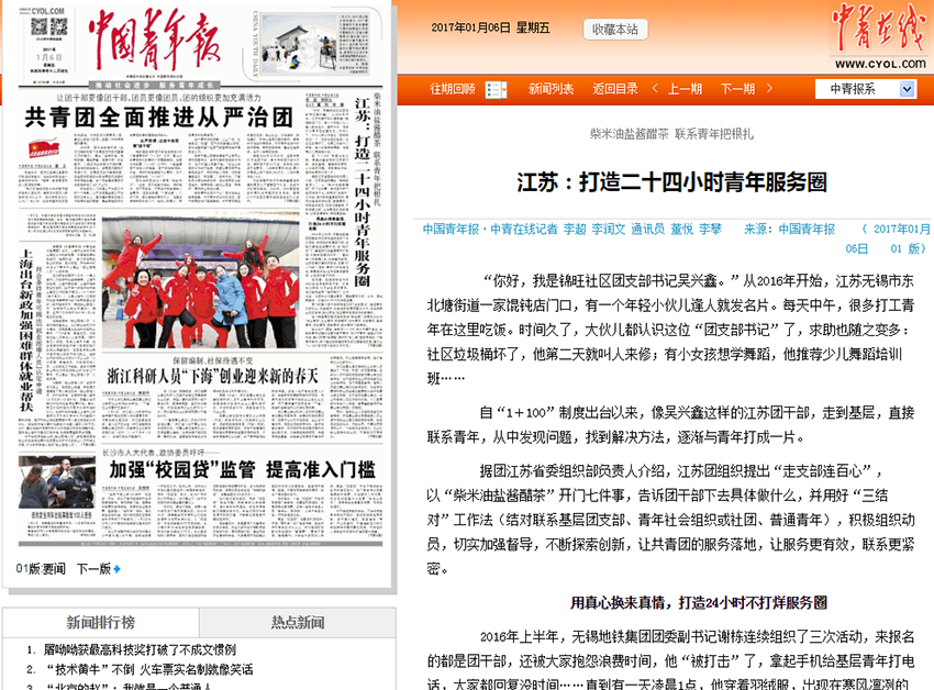 1月6日出版的中国青年报在头版刊发题为《江苏:打造二十四小时青年服务圈》的报道。我校成立教工团总支,