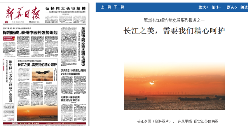 新华日报刊登成长春理论文章《长江经济带要加快形成绿色视觉标识》