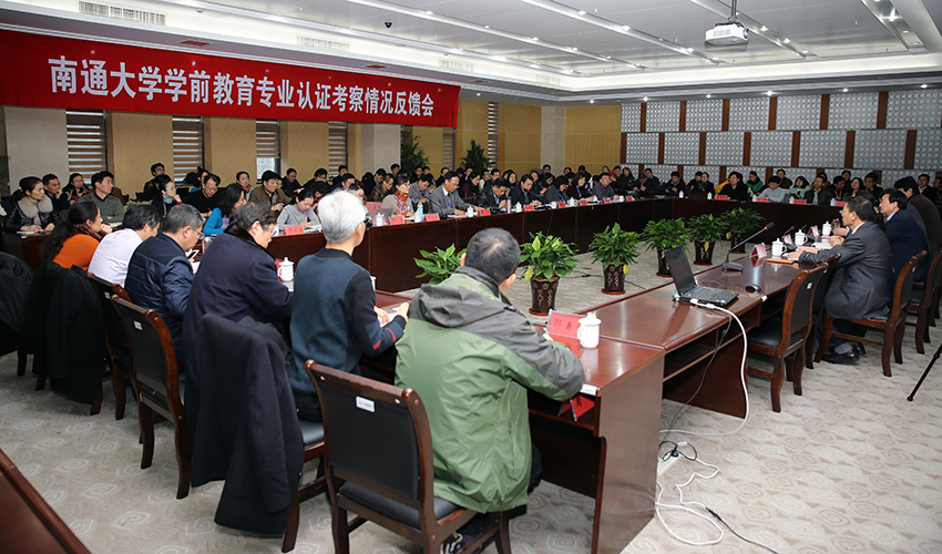 12月21日,我校学前教育专业召开专业认证反馈会。以江苏第二师范学院党委书记李洪天教授为组长的省教育