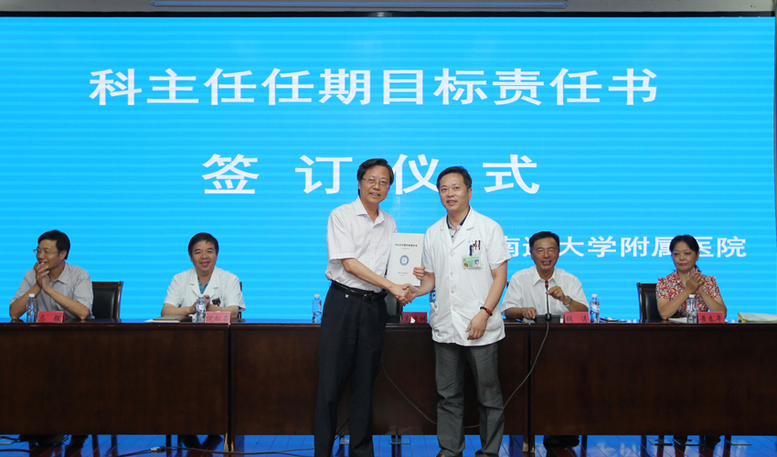 近日,我校附属医院举行科主任任期目标责任书签订仪式,副校长、附属医院院长高建林代表医院与临床业务科室