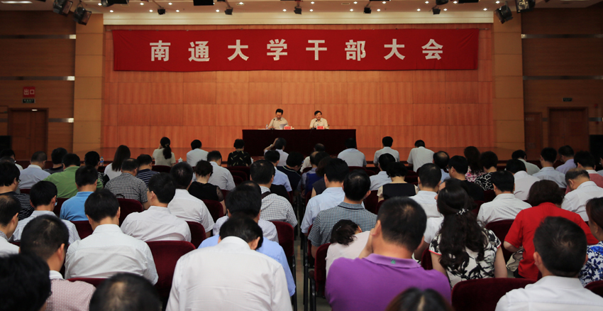 7月8日上午,我校召开学期末干部大会,总结回顾上半年工作,部署暑期相关工作。校党委书记成长春,校长程纯分别就暑期推进相关工作提出要求。2016年是学校“十三五”开局之年,也是深入贯彻落实学校第二次党代会精神、全面启动深化综合改革的重要之年。半年来,全校上下认真开展“两学一做”学习教育,紧紧围绕2016年工作要点,砥砺奋进,学校各项工作取得了显著成绩。成长春充分肯定了学校上半年各项工作取得的成果。他指出,在全校上下共同努力下,各项工作按照既定部署,平稳有序推进,有些工作也涌现出一些特色亮点,学校总体的发展态势良好。成长春就当前和今后一阶段的工作提出三点要求。一是始终坚持发展第一要务,全力以赴推进高水平大学建设。高水平大学建设是学校“十三五”时期一项事关全局的重大战略任务,要围绕省政府出台的《江苏高水平大学建设方案》,把握目标要求,切实增强发展的危机感和责任感;突出重点任务,切实提高核心竞争力和社会影响力,要着力打造高端创新团队,培养拔尖创新人才,提升科学研究和社会服务水平,传承创新优秀文化,推进学校治理体系和治理能力的现代化;加强通盘谋划,推动高水平大学建设任务落到实处,要研究关键问题,